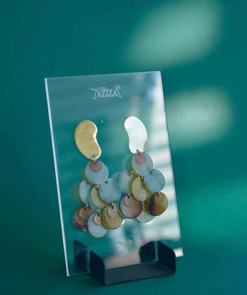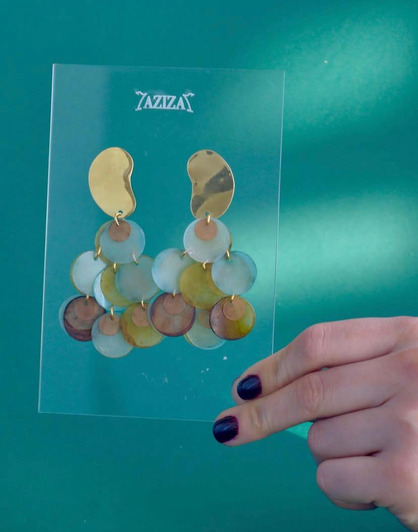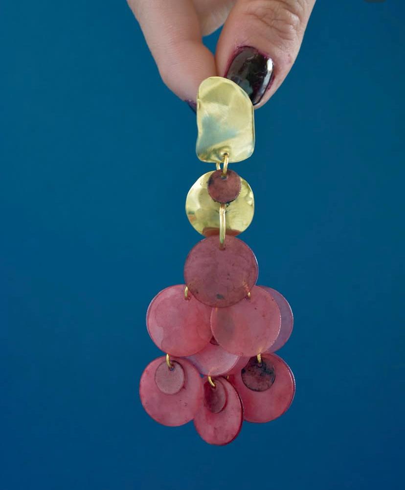 Caravanas en metal plateado o dorado con lentejuelas hechas de plástico PET reciclado de envases. Ideales para resaltar un look, livianas y únicas.